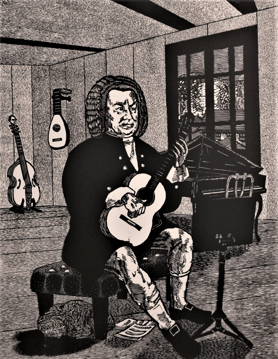 The Bach Method for Guitar – Linoprint. Edition of 30.